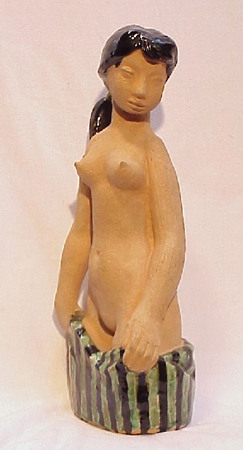 Johannes Hedegaard Danish studio ceramic sculpture. Buff clay with glazed base and hair. Incised artist initials on base.