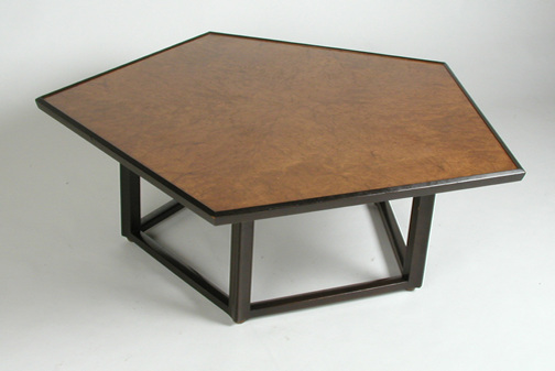 table, manufactured by Dunbar, No. 6003, label, pentagonal table